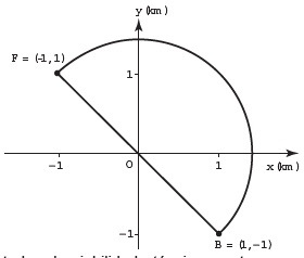 Em uma cidade será construída uma galeria subterrânea que receberá uma rede de canos para o transporte de água de uma fonte (F) até o reservatório de um novo bairro (B). Após avaliações, foram apresentados dois projetos para o trajeto de construção da galeria: um segmento de reta que atravessaria outros bairros ou uma semicircunferênciaque contornaria esses bairros, conforme ilustrado no sistema de coordenadas xOy da figura, em que a unidade de medida nos eixos é o quilômetro.