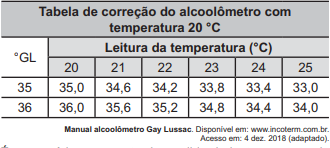 O alcoolômetro Gay Lussac é um instrumento destinado a medir o teor de álcool, em porcentagem de volume (v/v), de soluções de água e álcool na faixa de O ºGL a 100 ºGL, com divisões de 0,1 ºGL. A concepção do alcoolômetro se baseia no princípio de flutuabilidade de Arquimedes, semelhante ao funcionamento de um densímetro. A escala do instrumento é aferida a 20 ºC, sendo necessária a correção da medida, caso a temperatura da solução não esteja na temperatura de aferição. E apresentada parte da tabela de correção de um alcoolômetro, com a temperatura.