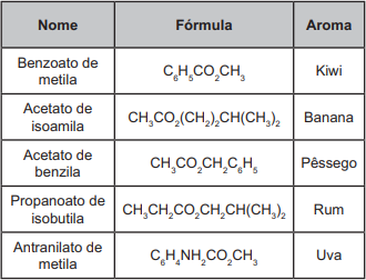 Com o objetivo de proporcionar aroma e sabor a diversos alimentos, a indústria alimentícia se utiliza de flavorizantes. Em geral, essas substâncias são ésteres, como as apresentadas no quadro.