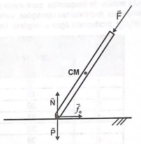O esquema que representa corretamente todas as forças que atuam sobre a muleta quando ela atinge o ângulo. crítico é: