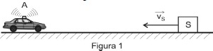 Uma fonte sonora A, em repouso, emite um sinal sonoro de frequência constante fA = 100 Hz. Um sensor S desloca-se com velocidade constante VS = 80 m/s, em relação à Terra, sobre um plano perfeitamente retilíneo, em direção à fonte sonora, como mostra a Figura 1.