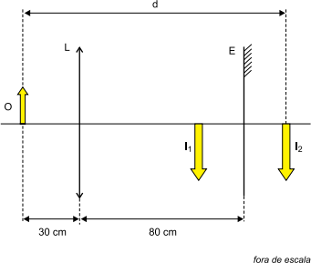 Uma lente precisa ser dimensionada para ampliar 5 vezes um objeto a uma distânci