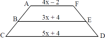 Seja um trapézio de base maior AB = 7x − 1 e base menor CD = x + 5. Os pontos M