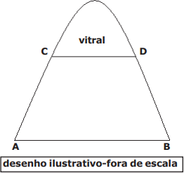 Um portal de igreja tem a forma de um arco de parábola, conforme figura abaixo. A medida da sua base AB é 4m e da sua altura é 5m. Um vitral foi colocado 3,2m acima da base.