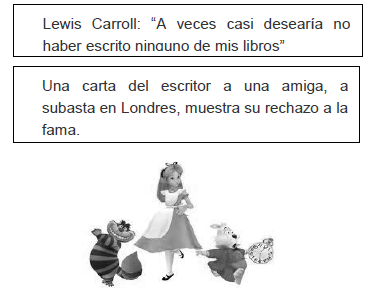 La relación de Dodgson con una niña de 10 años fue la inspiración de la Alicia de la ficción. Alice Liddell era una de las tres hijas del decano de un college de Oxford (Christ Church), a quienes el escritor solía entretener con sus historias sobre el inquieto conejo blanco, el Gato de Cheshire o el Sombrerero Loco. Durante un paseo en barco por el Támesis con las pequeñas de la familia Liddell se habría fraguado la idea de un libro que con el tiempo acabaría teniendo un inmenso impacto cultural, del que han bebido hasta hoy tantas y tan diversas manifestaciones artísticas. La carta inédita que va a ser ahora subastada por la casa Bonhams aporta al menos un retazo de la ambigua personalidad de Carroll, sometida a un juicio póstumo que sigue siendo objeto de debate entre quienes atribuyen la fijación por Alice a su condición de pedófilo, los que subrayan un amor desmesurado hacia las niñas aunque no de carácter sexual y aquellos para quienes sencillamente encarna una obsesión literaria por fijar la infancia eterna. Su verdadero perfil humano sigue siendo un gran desconocido porque cuatro de los trece volúmenes de sus diarios desaparecieron misteriosamente, y siete páginas de otro fueron arrancadas presumiblemente por sus herederos. Un legado incompleto cuya mutilación alentó las especulaciones sobre una perversión nunca probada. Disponible en: <http://cultura.elpais.com/cultura/2014/03/12/actualidad/1394641626727990.html> Acceso: 18 de marzo de 2014