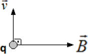 Uma carga negativa q se move com velocidade v, aproximando-se de um fio pelo qua