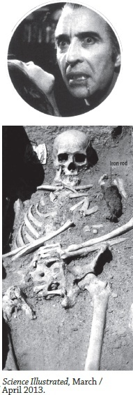 Vampires don’t exist, but ∈ the past, myths about bloodsucking ghosts were common. Throughout the world, archaeologists have found graves containing humans who were believed to be vampires. One of the most recent discoveries was made ∈Bulgaria during the excavation of a church ∈Sozopol near the Black Sea, where scientists found two skeletons around 700 years old with iron rods through their chests.