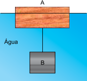 Um bloco cúbico, sólido, de aresta 1,0 m está preso a uma corda cuja tensão, ao
