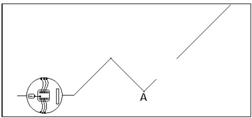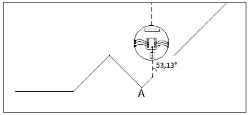 Ao virar na curva A, Barney fez uma manobra muito brusca e acabou saindo pela falha na linha, formando um ângulo de 53,13° entre a reta em que Barney começou a percorrer e a linha: