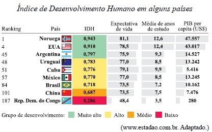 Geografia > Demografia > Desenvolvimento Humano e Indicadores Sociais