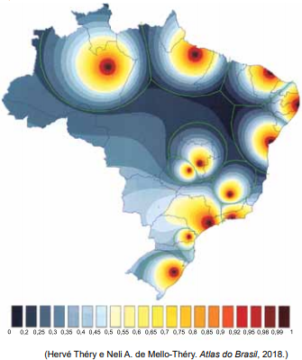 Examine o mapa que mostra a região de influência da Grande Metrópole Nacional, S