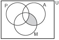 No diagrama, U representa o conjunto das pessoas que estavam nesse voo; P o conjunto dos passageiros; M o conjunto das pessoas que haviam passado pela cidade do México e A o conjunto das pessoas com sintomas da gripe influenza A.
