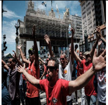 "Firefighters shouting slogans during a public servants’ demonstration against austerity measures ∈Rio de Janeiro ∈December.” (CreditYasuyoshi Chiba/Agence France- Presse — Getty Images)