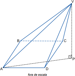 A pirâmide da figura tem base triangular, de vértices A, B, C, e a aresta VC é p