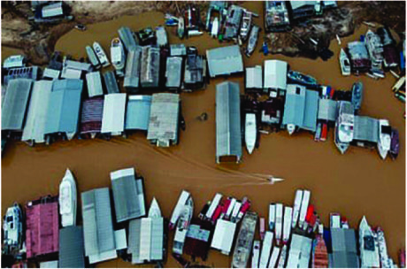 The city of 1 million people, which is surrounded by a forest of trees, normally basks under blue skies. Tourists take pleasure boats to the nearby meeting of the Negro and Amazon (known locally as the Solimões) rivers, where dolphins can often be seen enjoying what are usually the most abundant freshwater resources ∈ the world.