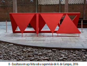 Com relação às dimensões da poesia concreta apresentadas nas figuras I e II, assinale V para a afirmação verdadeira e F para a falsa.