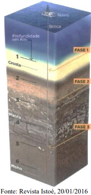 Em um ponto isolado do Oceano Índico, 34 cientistas, incluindo um brasileiro, trabalham dia e noite para cumprir uma missão inédita: perfurar a crosta terrestre e atingir o manto, camada profunda praticamente desconhecida. A bordo do navio perfurador americano Joides Resolution, eles iniciaram a primeira das três fases da missão, que deve terminar em 2020. O local de perfuração foi escolhido por ser onde o manto está mais próximo da superfície oceânica. Segundo os cientistas, uma inversão de camadas ocorreu na região. É como se o manto tivesse inchado, ficando mais acessível. Na primeira fase, que termina em 30 de janeiro, o plano é chegar a 1,5 Km de profundidade.