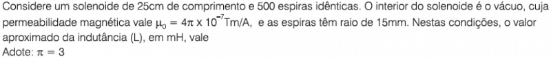 Nas questões de Física, quando necessário, utilize: Densidade da água = 1,0 kg/L