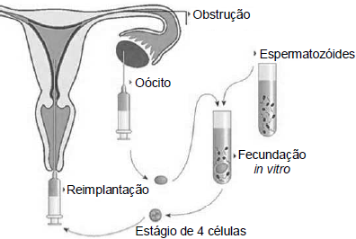Na fertilização in vitro, espermatozoides são adicionados aos gametas femininos