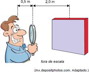 Um estudante aproveitando a luz solar e fazendo uso de uma lente de aumento (con
