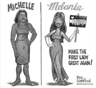 Fury at racist cartoon comparing ‘butch’ and ‘masculine’ Michelle Obama to pageant-ready Melania Trump