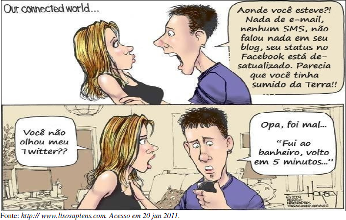 IV) ( ) Ao compararmos o que veiculam os dois textos, conclui-se que a internet e as redes sociais mudaram significativamente o estilo de vida das pessoas, inclusive nos relacionamentos amorosos, no que se refere à comunicação.