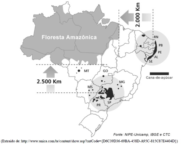 Analise os mapas, que mostram a área plantada (em hectare) da produção de cana-d