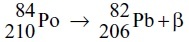 O decaimento do Po-210 a Pb-206 é corretamente expresso pela equação