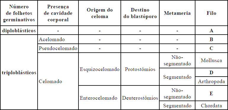 Segundo o desenvolvimento embrionário, os animais podem ser classificados em pro