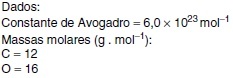 Considerando uma concentração de CO de 200 ppm (mg . L−1) no ar, e que a reação de desativação de hemoglobina tem rendimento de 70%, o número de moléculas de hemoglobina desativadas, para cada litro de ar inspirado, será de, aproximadamente,