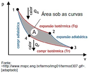 A partir das informações do ciclo de Carnot sobre uma massa de gás, conforme mostrado no gráfico 1 2 3, analise as alternativas a seguir.