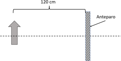 Uma vela acesa está a 120 cm de uma parede. Sobre a parede é projetada a imagem