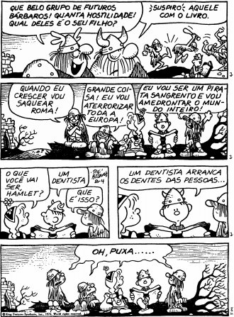 ( ) No terceiro e no quarto quadrinhos, as falas de Hamlet indicam que ele já vivenciou a situação descrita.