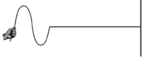 Um garoto está brincando com uma corda apoiada no solo horizontal e presa em um