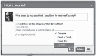 [34] purchases to your Facebook wall, to encourage friends to help you choose. “This turns search into a conversation, and