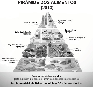 Disponível em: <http://noticias.uol.com.br/saude/ultimas-noticias/redacao/2013/07/13/piramide-alimentar-eredesenhada-para-melhorar-a-dieta-dos-brasileiros.htm>. Acesso em: 22 fev. 16. (Adaptado.)