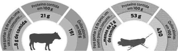 Disponível em: <http://www.istoe.com.br/reportagens/98419A+ONU+RECOMENDA+COMA+INSETOS>. Acesso em: 24 fev. 16. (Adaptado.) Disponível em: <http://veja.abril.com.br/noticia/ciencia/a-comida-do-futuro>. Acesso em: 24 fev. 16. (Adaptado.)
