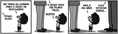 Disponível em: https://www.embalagemmarca.com.br/2018/11/reciclagem-de-aluminio-em-alta-no-brasil/;https://tirasarmandinho.tumblr.com/ post/136904248594/tirinha-original. Acesso em: 21 nov. 2018. (Parcial e adaptado.)