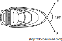 Dois pescadores e um aprendiz estão puxando um barco pelo ponto 0 ao longo de um