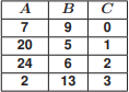 Zuzé desafiou o corvo falador. De dentro de seu gabinete, Zuzé mostrou ao corvo a seguinte tabela.