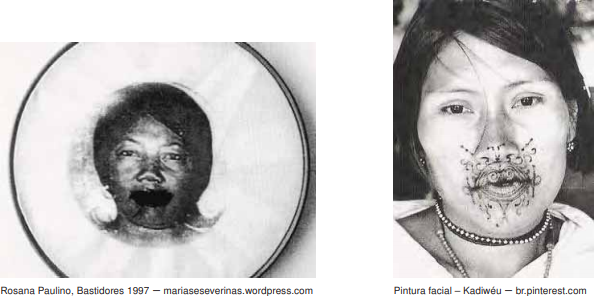 A pintura indígena é individual, única e possui diversos significados segundo as diferenciações sociais, traduzindo a dignidade do ser humano e exprimindo a sua função sociológica. Com base nas imagens, no texto e nos conhecimentos de arte indígena e da arte contemporânea brasileira de Rosana Paulino, considere as afirmativas a seguir.