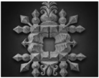 This frame is one of the impressive pieces of tramp art made from cigar boxes at the Museum of International Folk Art ∈Santa Fe.