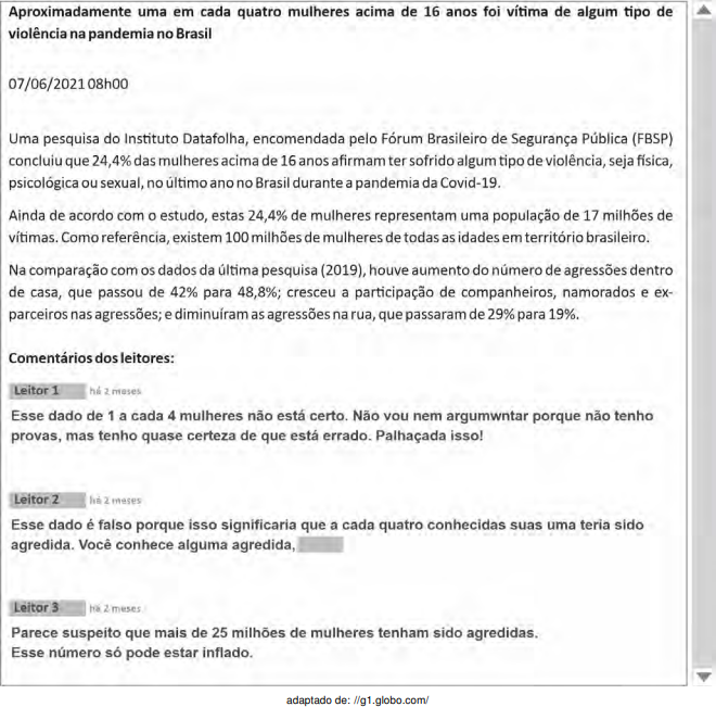 III. A reportagem noticia que 24,4% das mulheres do segmento pesquisado representam 17 milhões de vítimas, do que se conclui que o estudo está equivocado, pois este percentual representa 24,4 milhões de mulheres.