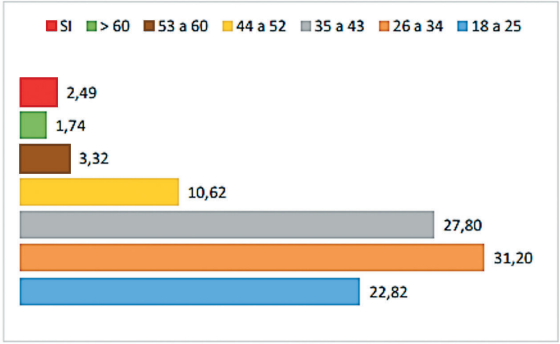 A partir dessa tabulação, a análise da faixa etária nos permite compreender como a violência é sentida e lidada, de acordo com a idade da representante (mulheres). No gráfico a seguir, apresentam-se os perfis da representante com relação à faixa etária que busca auxílio legal.