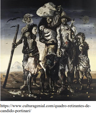 Observe o quadro de Candido Portinari, pintado em 1944 em Petrópolis, no Rio de Janeiro. O painel é um óleo sobre tela e tem 190 X 180 cm. Faz parte do acervo do Museu de Arte de São Paulo (MASP).
