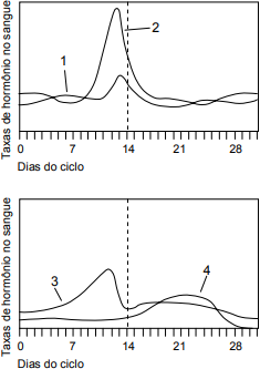 2) A presença do hormônio (3) no sangue começa a induzir o espessamento do endométrio. Quando a taxa desse hormônio atinge um determinado nível, a hipófise é estimulada a liberar grande quantidade de gonadotrofinas (1) e (2).