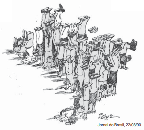 Assinale a charge que, de modo semelhante ao verso “e abater os que aqui nascem?”, critica, sob um enfoque metafórico, um comportamento presente na cultura brasileira, sobretudo em relação à nossa identidade.