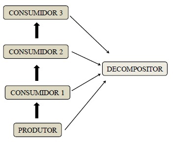 A estrutura de qualquer ecossistema sempre apresenta três categorias de organismos que ocupam níveis tróficos distintos, conforme o esquema que se segue.