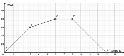 Um celular está conectado a um carregador que fornece uma corrente elétrica de 2