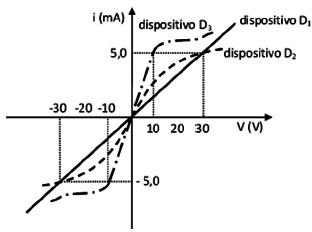 Um dispositivo eletrônico com uma resistência de <img alt="20 \ \Omega" class="f